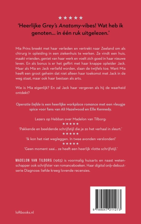 Een romantische feelgood die speelt in de medische wereld. Mia wil in Zeeland een nieuw leven als chirurg opbouwen. Ze wordt verliefd op haar opleider Jack, maar draagt een geheim met zich mee dat haar toekomst als arts in de weg kan zitten. In een luchtige, toegankelijke stijl geschreven. Madelon van Tilborg is een Nederlandse schrijver en arts. Ze werkt als onderzoeker op de afdeling Huisartsgeneeskunde van het Erasmus MC te Rotterdam. Ze schreef een klein aantal boeken.